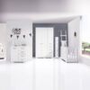 1 penderie, 4 tiroirs de 40 cm de largeur, 3 étagères réglables en hauteur