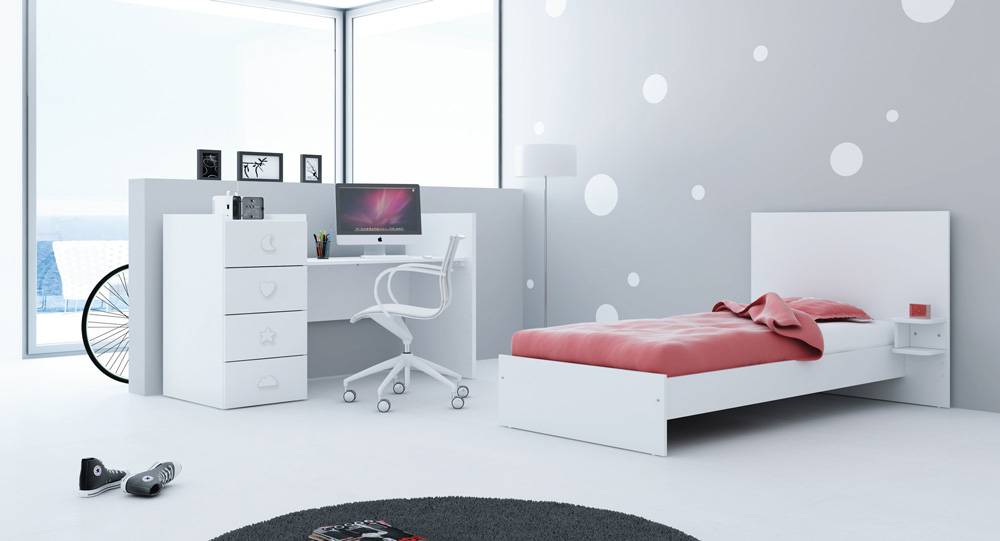Lit de couleur blanc et commode disponible en 5 couleurs :